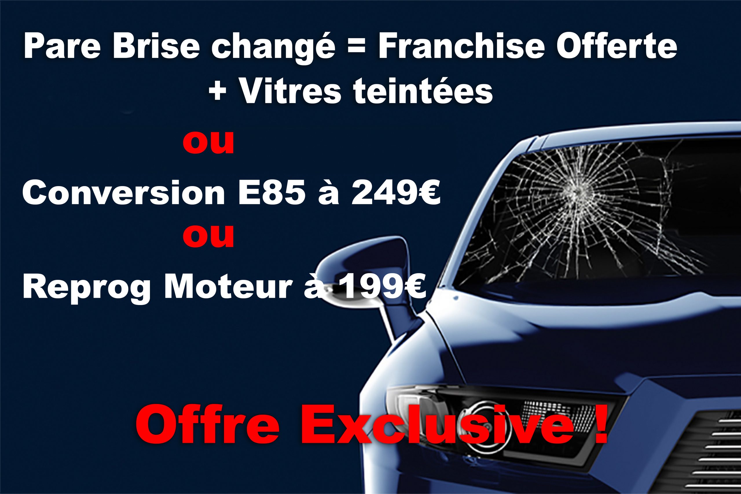 Pour tout changement de pare-brise ou lunette arrière, Bénéficiez en partenariat avec notre enseigne BLACKTINT d’une réduction jusqu’à de 250€ sur les vitre teintées, la reprogrammation moteur, la conversion à l’éthanol ou 200€ carte amazon ou chèque bancaire.